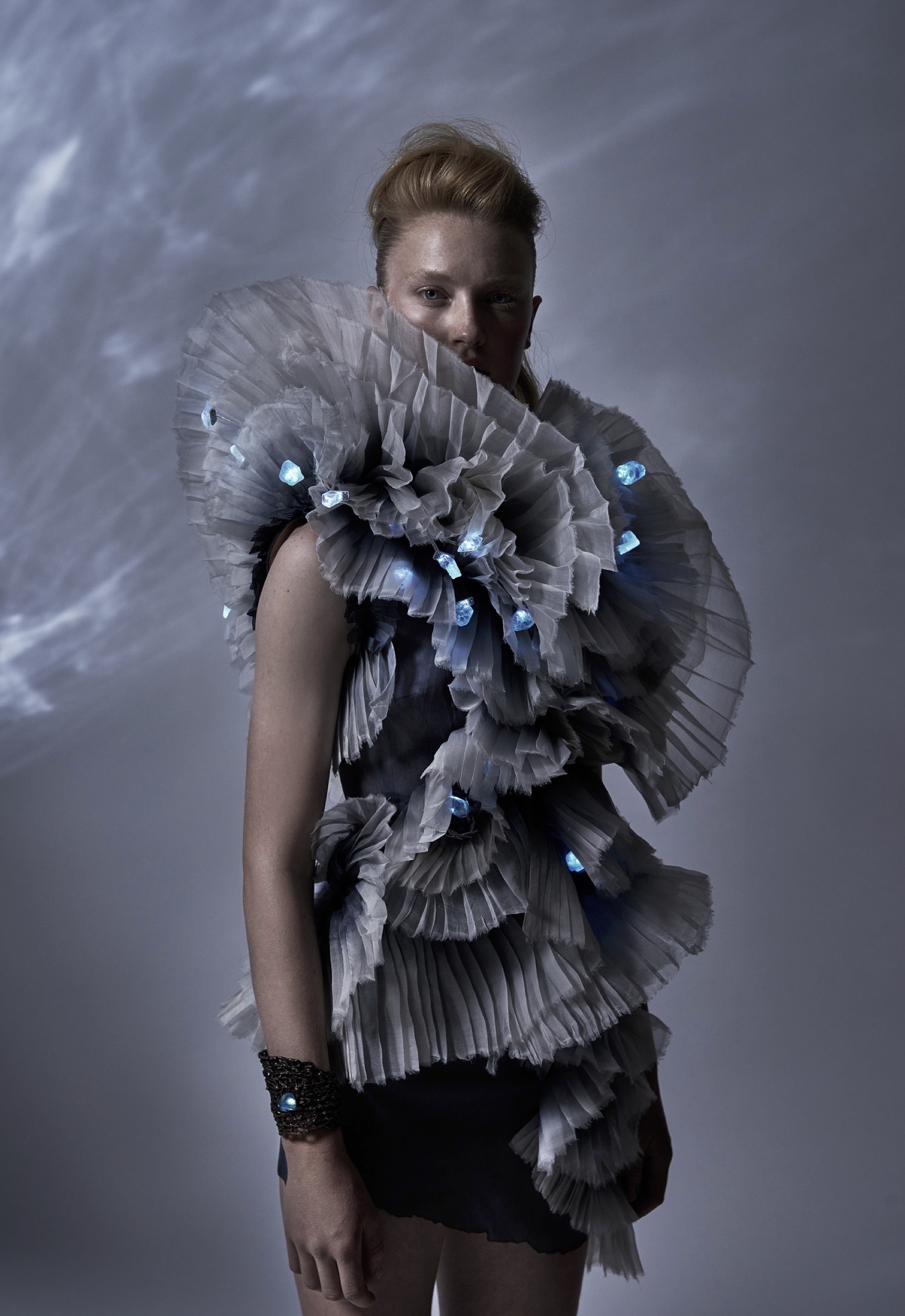 British designer Deborah Milner’s is a pioneer of sustainable fashion who has focused on sustainable fashion since 2000, and her latest Regenerating the Reef designs are inspired by the plight of coral reefs globally. The specially commissioned silk jacquard featured was inspired by Deborah’s studies of dead coral at the Natural History Museum.